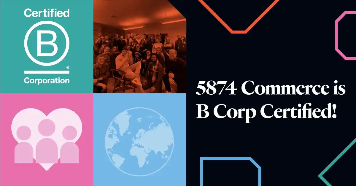 We’re thrilled and incredibly proud to announce that 5874 Commerce is now a Certified B Corporation™! As a B Corp agency, we’ve joined a global community of businesses that meet B Lab’s high standards of social and environmental impact.